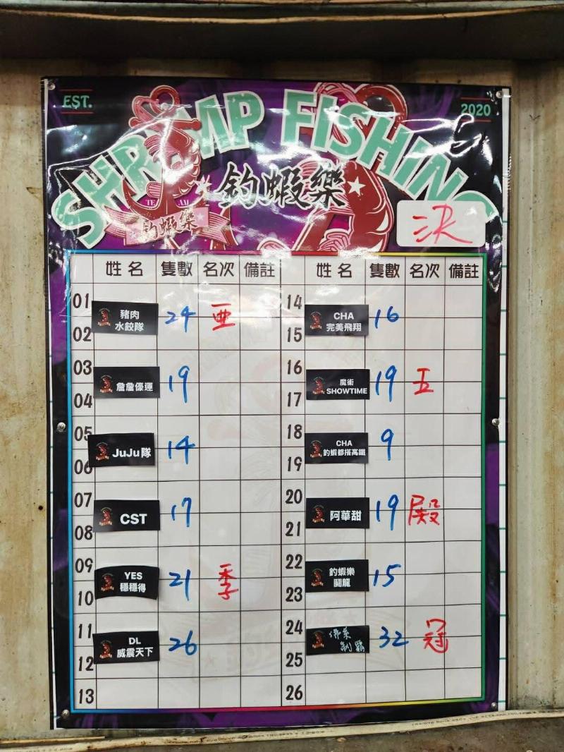 7.釣獲死蝦若蝦體變紅或是不完整不算,其他皆算。